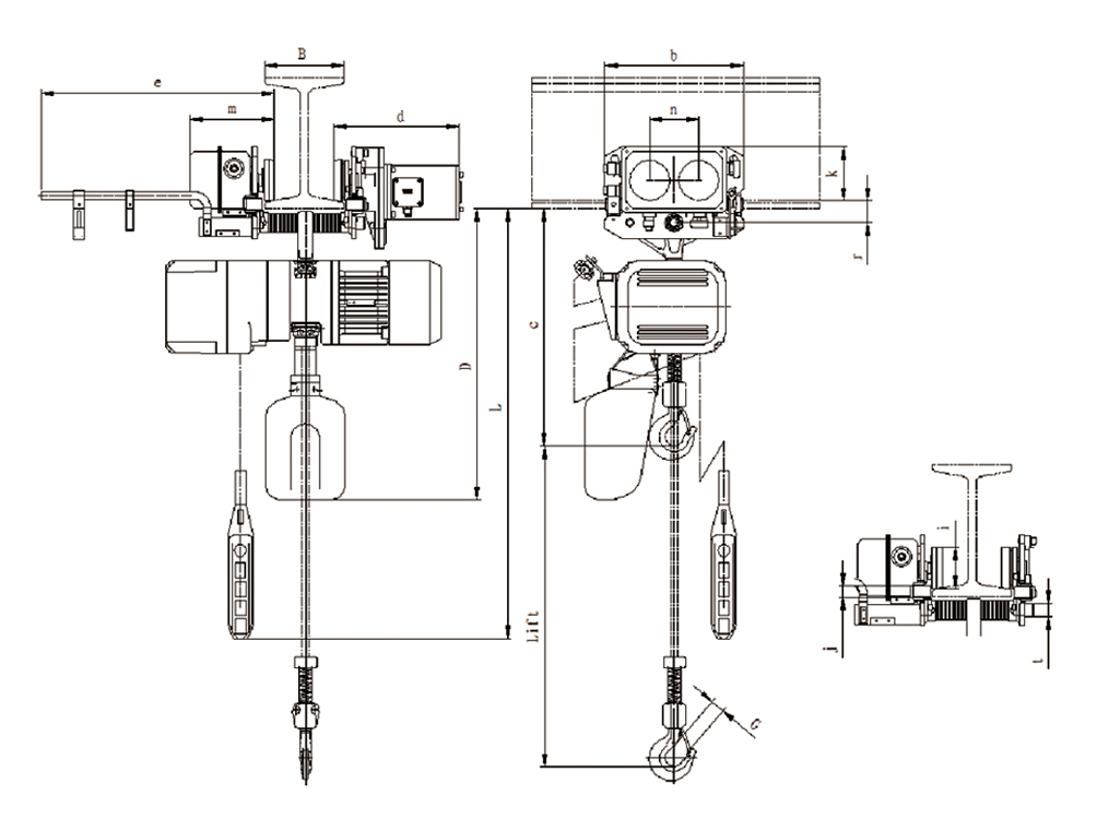 供电电缆标准长度为5.0M 1、扬程(载重链)、按钮控制线、供电电缆的长度不在标准规格以内,请于敝公司商量。 2、载重链经过热处理,无法拼接使用,请注意。 3、帆布制链袋为标准